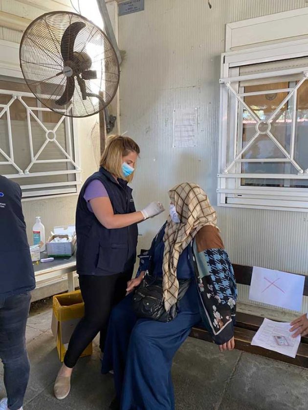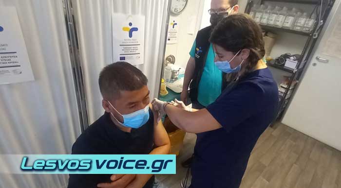 Στη Μυτιλήνη σήμερα, όπου υπάρχει και η μεγαλύτερη δομή φιλοξενίας αιτούντων άσυλο, ο εμβολιασμός πραγματοποιήθηκε ανά ομάδες των πέντε ατόμων στο χώρο παροχής υπηρεσιών υγείας που είχε δωρίσει η ολλανδική κυβέρνηση και που είχε τοποθετηθεί στην καμένη ήδη δομή της Μόριας απ’ όπου μεταφέρθηκε. «Καθώς τα εμβόλια δεν μπορούν να παραμείνουν πολλή ώρα έξω από το ψυγείο, οι εμβολιασμοί θα γίνονται σε συγκεκριμένο αριθμό ατόμων και κατόπιν ραντεβού και πάντα μέσα στο ΚΥΤ ώστε να μην επιβαρύνονται οι εμβολιαστικές γραμμές της τοπικής κοινότητας» είπε στο ΑΠΕ-ΜΠΕ ο διοικητής του ΚΥΤ στον Καρά Τεπέ Νίκος Μπαμπάκος.
