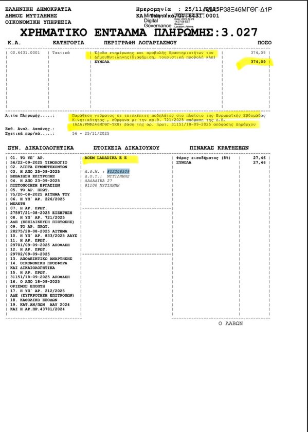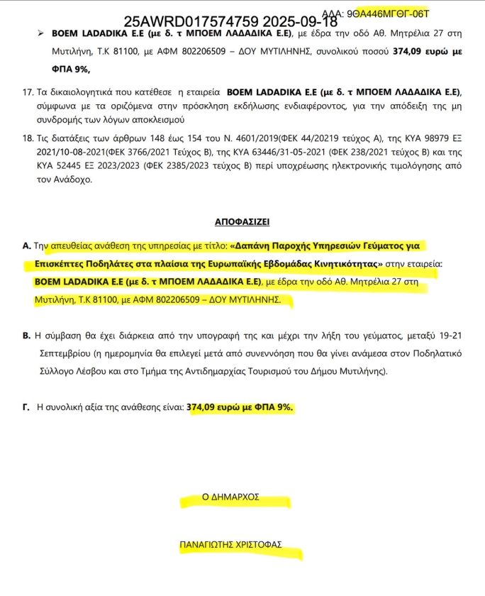 Ξέχασαν όμως κάτι: Μπορεί να «εξαφάνισαν» την απόφαση της Αναπτυξιακής Εταιρείας αλλά ξέχασαν να εξαφανίσουν την από 18-09-2025 και με αριθμό πρωτοκόλλου ΔΟΥ/311151 ( ΑΔΑ 9ΘΑ446ΜΓΘΓ-06Τ) απόφαση του ΙΔΙΟΥ ΤΟΥ ΔΗΜΑΡΧΟΥ για απευθείας ανάθεση υπηρεσίας με τίτλο «δαπάνη παροχής υπηρεσιών γεύματος για επισκέπτες ποδηλάτες στα πλαίσια της ευρωπαϊκής εβδομάδας κινητικότητας» ποσού 374,09 ευρώ ξανά προς τον κ. Γιαννάκα για την οποία δαπάνη, αυτή τη φορά πληρώθηκε σύμφωνα με το 25-11-2025 και με ΑΔΑ: Ρ38Ξ46ΜΓΜΘΓ-Δ1Ρ χρηματικό ένταλμα πληρωμής.